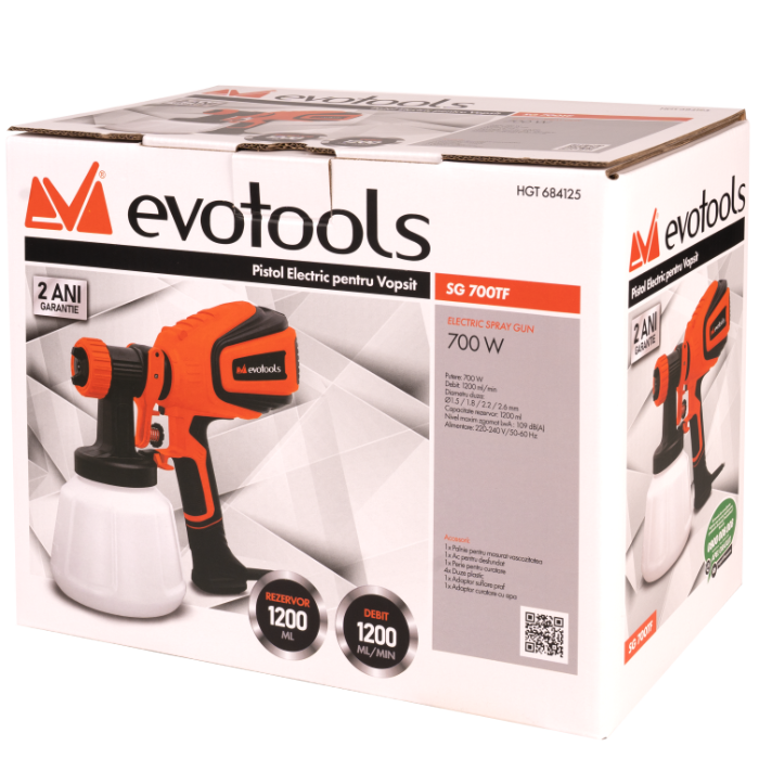 | Descriere: | Pistol Electric pentru Vopsit SG700TF EvoTools / P[W]: 700; V[ml]: 1200 |