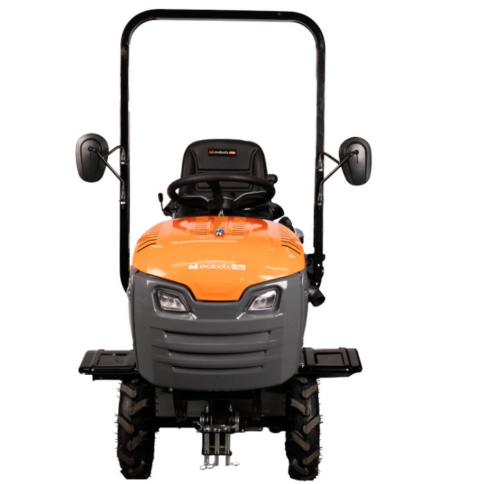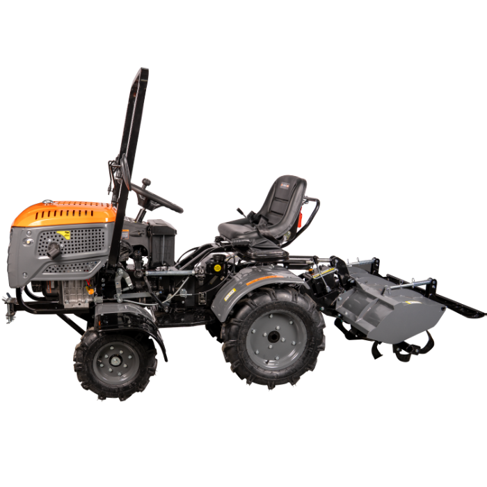 Pentru siguranță și confort, minitractorul este dotat cu scaun reglabil, centură de siguranță, cadru ROPS, oglinzi retrovizoare, sistem de frânare eficient și avertizare acustică.