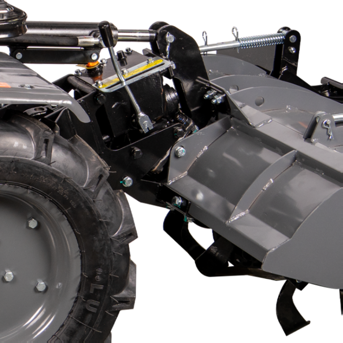 Ride-On R003 include freza motrică de 90 cm, care prelucrează solul la un grad înalt de mărunțire, pentru o pregătire uniformă a terenului. Cu adâncime de lucru până la 15 cm, freza permite eficientizarea proceselor agricole și menținerea unui randament ridicat. Sistemul hidraulic de ridicare și coborâre și ambreiajul cu dublă treaptă oferă control precis și ușurință în manevrare, indiferent de experiența utilizatorului.