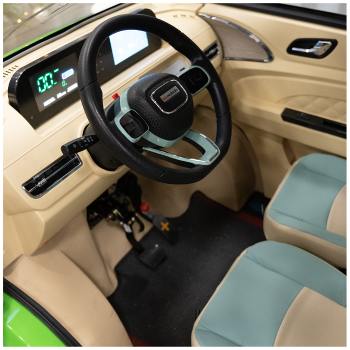 Dispune de un motor brushless cu o putere nominala de 3000W ce dezvolta o viteză maximă de 25 km/h, acumulatori de 72V/100Ah ce ii confera o autonomie de pana la 130 km,in conditii optime , frâne hidraulice și afișaj digital, asigurând astfel confort, siguranță și eficiență în orice deplasare.