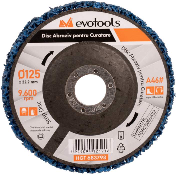 Acest disc abraziv , este soluția ideală pentru o gamă largă de aplicații, de la șlefuirea grosieră la pregătirea suprafețelor pentru vopsire. Fabricat din carbură de siliciu de înaltă calitate și cu un corp din fibră de sticlă, indeparteaza rugina, murdaria din piesele metalice, curata si lustruieste diferite tipuri de suprafete.