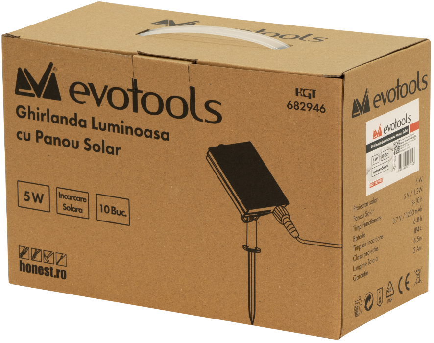 Ghirlanda Luminoasă cu Panou Solar de 6.5m și 10 Becuri. Cu un design versatil și funcționare pe bază de energie solară, ușor de montat și complet ecologică, va adăuga un plus de frumusețe locuinței tale. Fără costuri suplimentare de energie electrică. Ușor de instalat și complet autonomă.