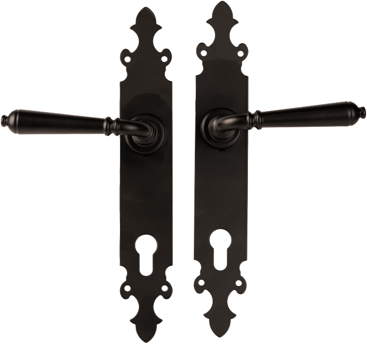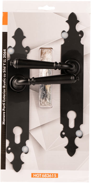 Mânere porți exterior rustic cu șild Y LL, realizate din oțel rezistent pentru sild și cu mâner din aluminiu, acoperite cu un strat rezistent de vopsea.