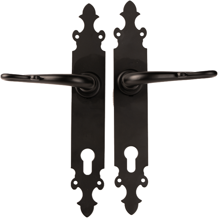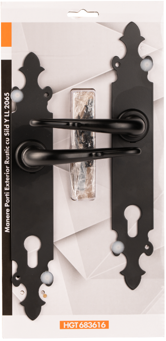 Mânere porți exterior rustic cu șild Y LL, realizate din oțel rezistent pentru sild și cu mâner din aluminiu, acoperite cu un strat rezistent de vopsea.